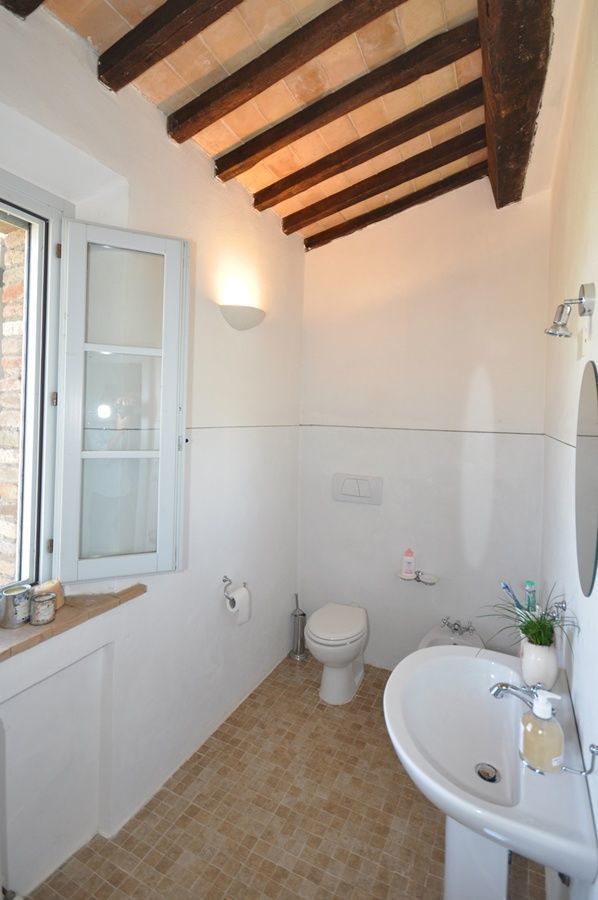 At guests' disposal: large, very well-tended garden (entirely enclosed) with beautiful pool reserved for guests' exclusive use (irregular shape, minimum depth 1 m - maximum depth 2,2 m - open from 01/05 to 30/09), with panoramic view of the surrounding countryside and part of Lake Trasimeno, sundeck surrounding the pool, outdoor shower (hot and cold water), movable barbecue, beautiful pergola furnished with table and chairs in the garden in front of the house's kitchen. All of the bedrooms have a fan.