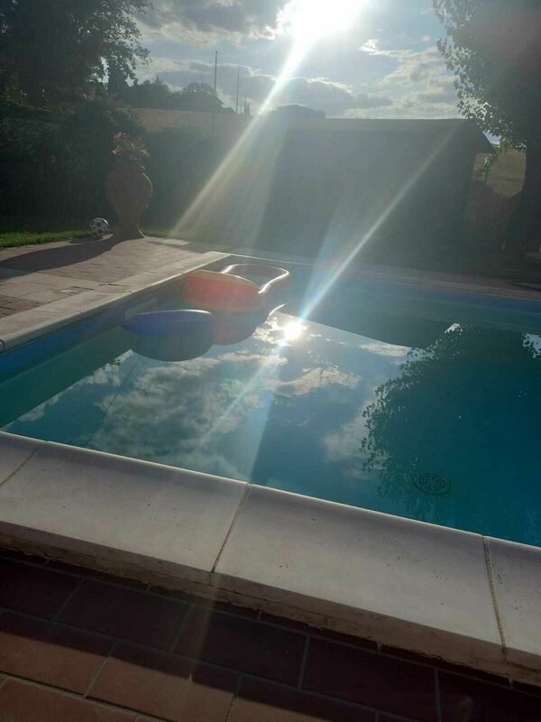 At guests' disposal : fenced-in garden with private, fenced swimming-pool (8 x 4 m - min. depth 1,3 m - max. depth 1,7 m), furnished outdoor area ideal for al-fresco dining. Laundry (washing-machine). Free WI-FI internet available.