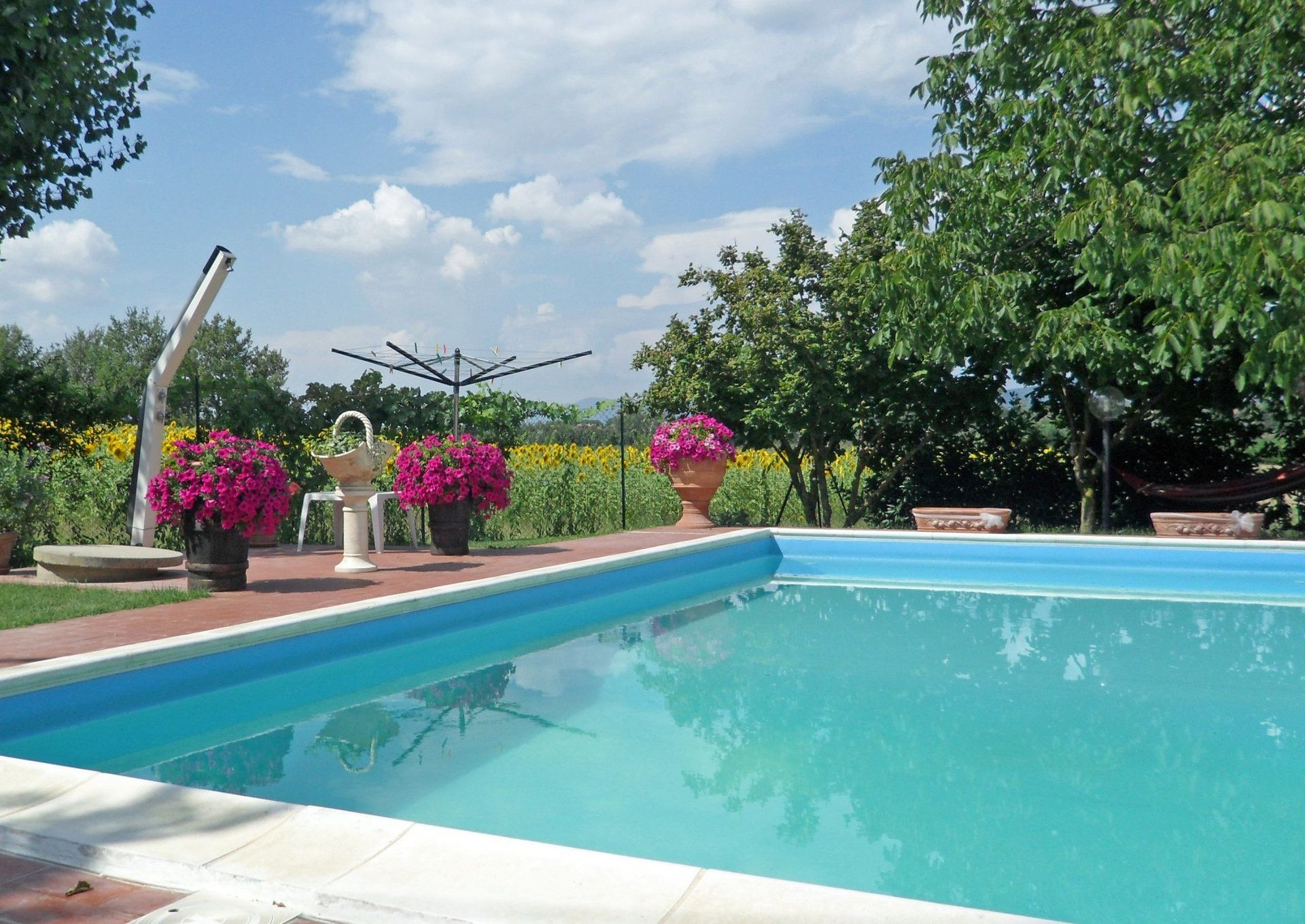 We had a wonderful time at Casa Laura. If you enjoy privacy than this is the place to be. There are no neighbors, only fields around. The pool area is fantastic and well kept. The area is fenced in, so save if you stay with kids. The house is well equiped with all that one needs in a vacation home. The owner stops by to attend the pool and garden, but always lets you know ahead of time. The train station is only about five minutes away by car so there is easy access to all major citys like Arezzo, Florence or Rome. There is free parking available at the station and the trains run frequently and on time. We can highly recommend a stay at Casa Laura.