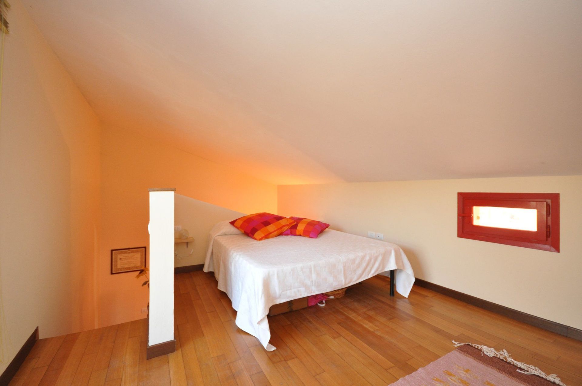 1st floor (accessible from the living-room): double bedroom (min. height 1,2 m). This bedroom is not completely closed.