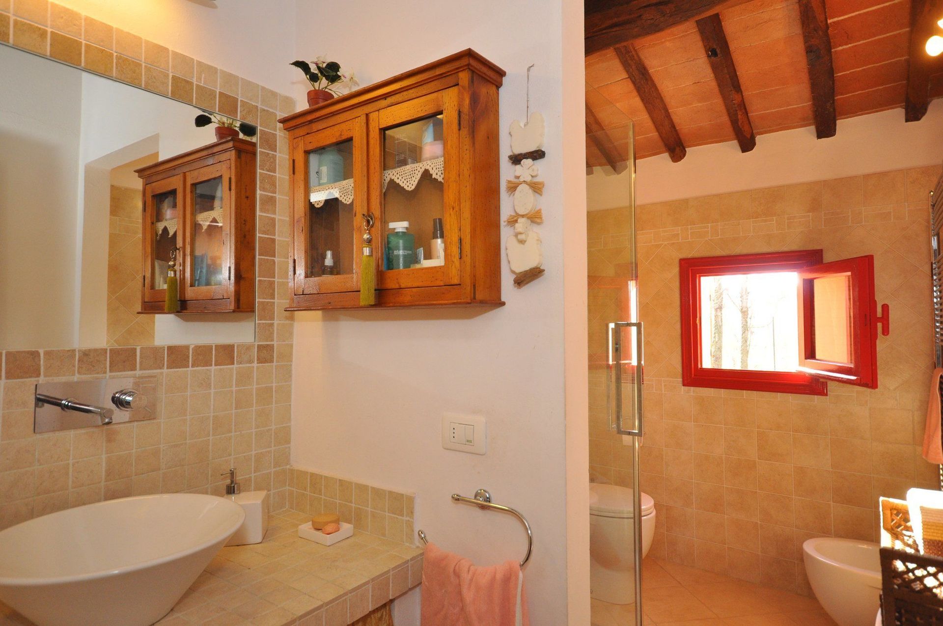Distances Montecchio with groceries 2 km away, Camucia with shops of all kinds and railway station 4,5 km, Cortona 7,5 km away, Montepulciano 27 km, Arezzo 30 km, Pienza 40 km away, Rapolano Terme (spas) 40 km, the town of Montalcino (renowned for the production of the Brunello wine) 60 km away, Siena 65 km, San Gimignano 105 km, Florence 115 km away.