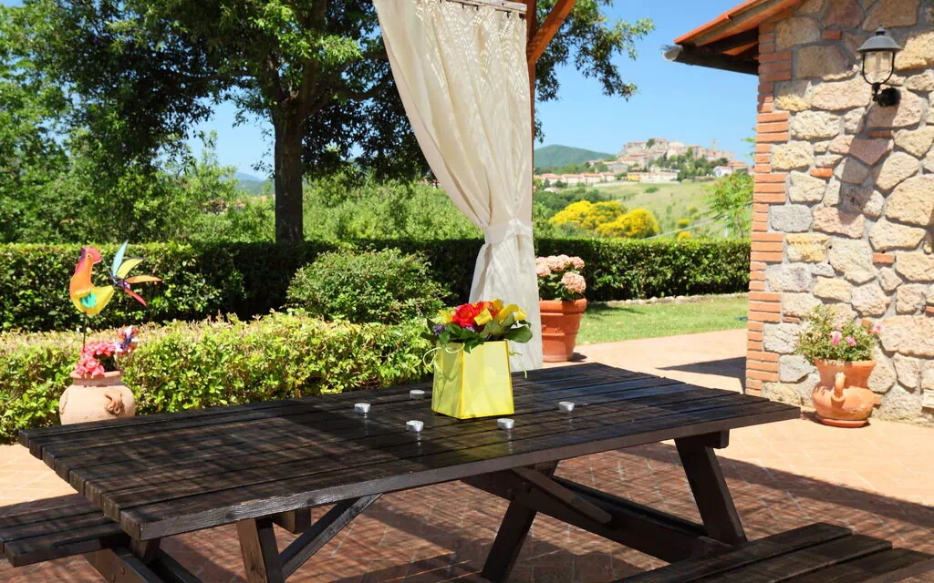 Panoramaview en huisje ziet er top uit, echter zit het achter een berg en eikenbos en bij zonsopkomst, van april tot midden mei kun je niet buiten ontbijten. Bij koud weer is het huisje dan ook erg koud. De eigenaar is een vriendelijke behulpzame man en top. Helaas zijn de meubels echt Toscaans en niet voor Noord Europese mensen gebouwd (te korte zitting) en hoge tafel stoelen passen niet. De kastjes zit te vol met pannen en servies. Met mooi weer kun je daar goed verblijven en leef je meer buiten. ( we hadden een beetje pech met het weer). Keuken heeft geen afzuigkap met verlichting dat zou een aanrader zijn, echt koken doe je niet want dan ruikt alles naar eten. (pasta wil nog wel)... Wij houden van natuur dus dat zit wel goed, tenzij je niet van wormpjes, kevertjes, muggen, vliegen, adders, vossen en wilde zwijnen houdt moet je hier niet zijn. Roccastrada is niet toeristisch en doet kil aan. De horeca , bakkerijen en middenstand is niet ingesteld op toeristen (heeft soms ook wel weer charme) veel is dicht en niet veel keuze. Tip Gino tankstation is kortbij met barretje voor een snel ontbijtje en heeft zeer betaalbare goede simpele menu's. De pizza en pasta zijn beter dan bij de duurdere horeca!!! Bezoek aan Roccatherdigi en Montemassi is leuker en gastvrijer beter ingespeeld op de gasten.