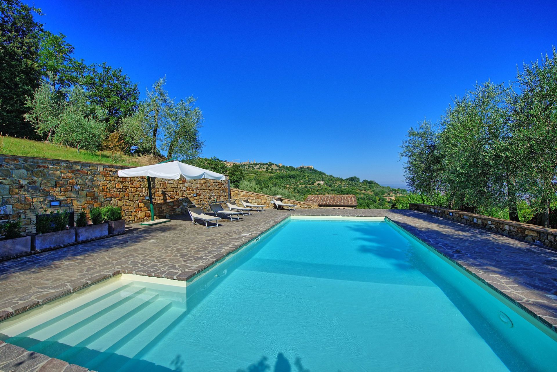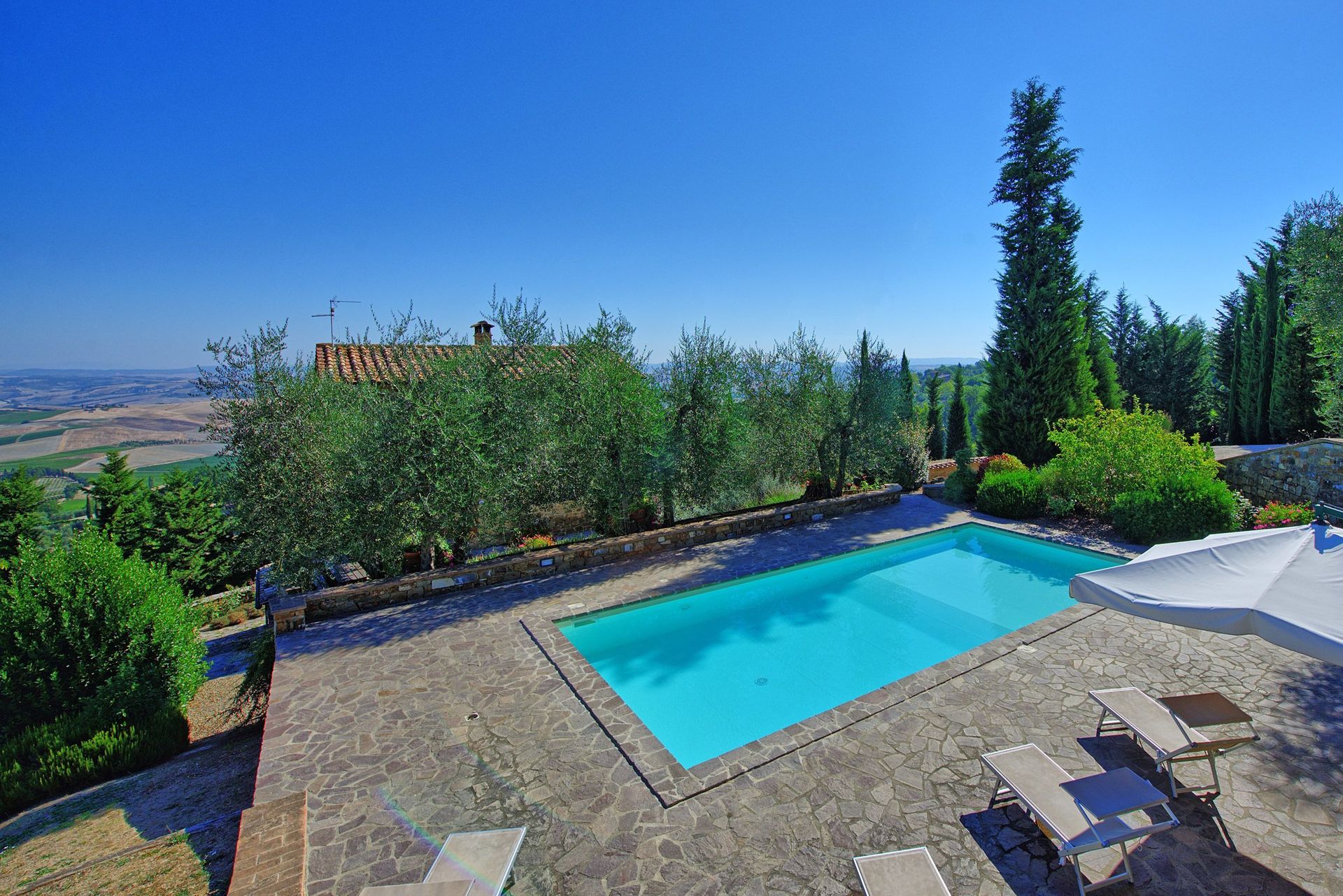 Beautiful and characteristic villa with a swimming pool located on the slopes of the well-known town of Montalcino. The hills where the rental is situated are home to the vines that produce the famous wine “Brunello di Montalcino”. The fantastic panoramic views from the villa stretch across Montalcino and the surrounding hills. A beautiful private swimming pool awaits guests for relaxing after days spent exploring the beauty of the area. The house dates back to the 17th century and it was transformed into a characteristic country home with large outdoor areas, well looked after and with numerous flowers and aromatic plants.