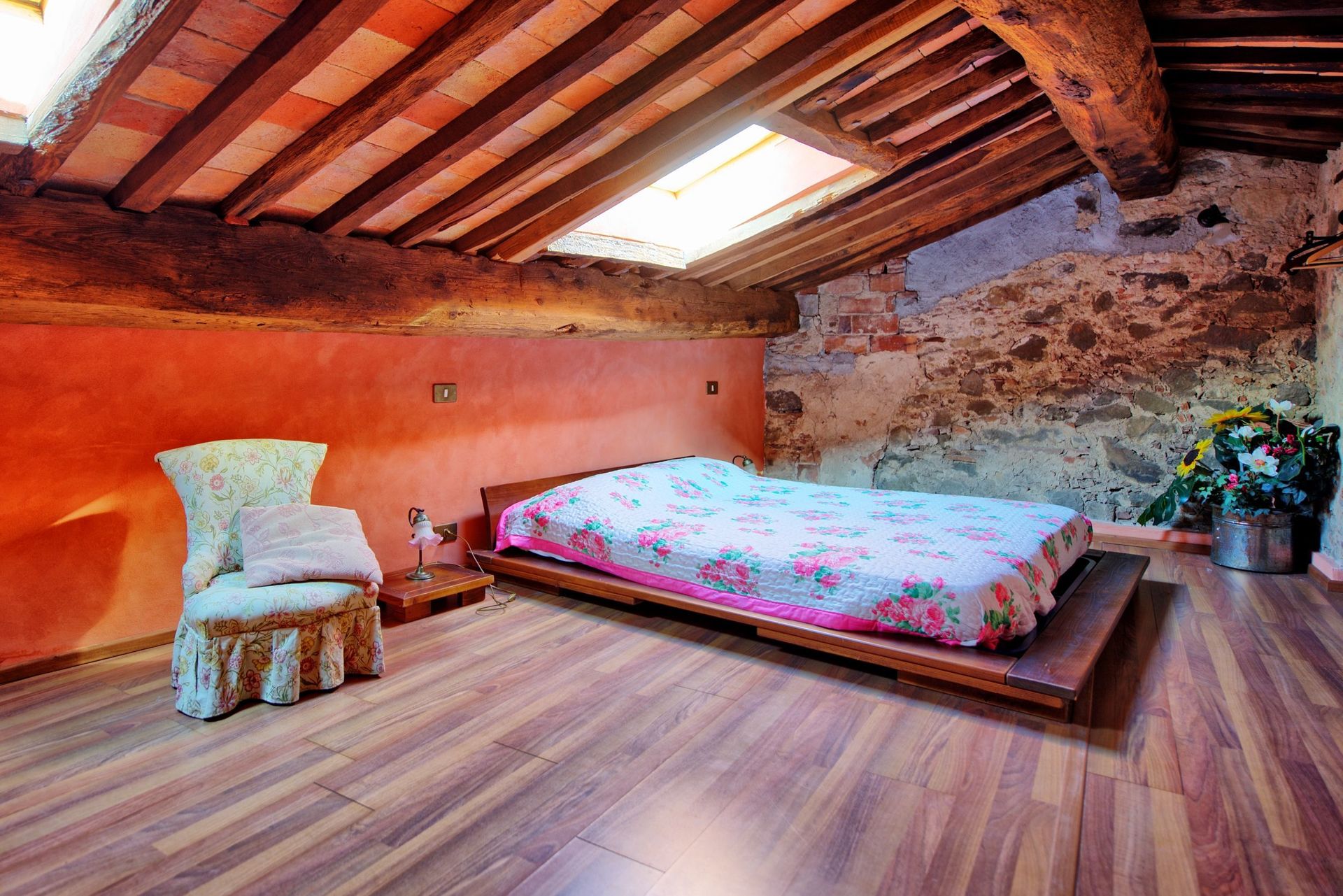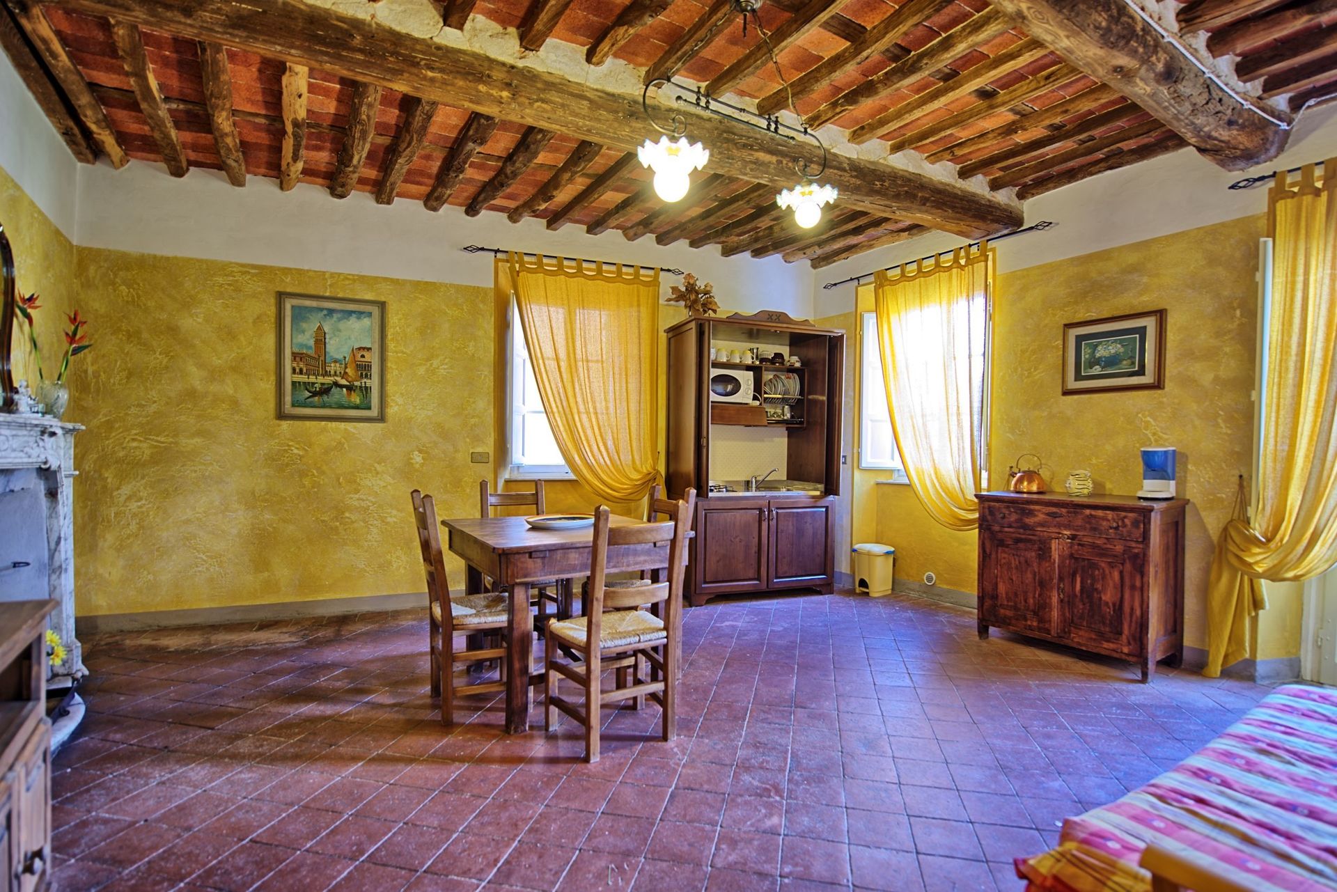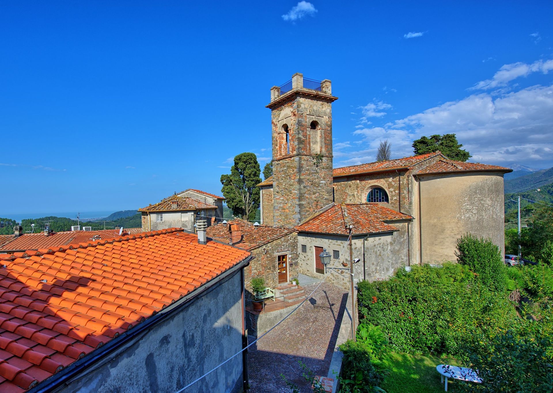 The property lies in Gualdo, a charming village upon the hills of Lucca dating back to the 1400’s. Within the town, visitors will find a quiet atmosphere. Along with a church, at the town’s main square there is also a restaurant where visitors can enjoy dining al fresco during the summer period. Not far from the area is the beautiful Versilia zone, the Apuan Alps and the historical cities Lucca and Pisa.