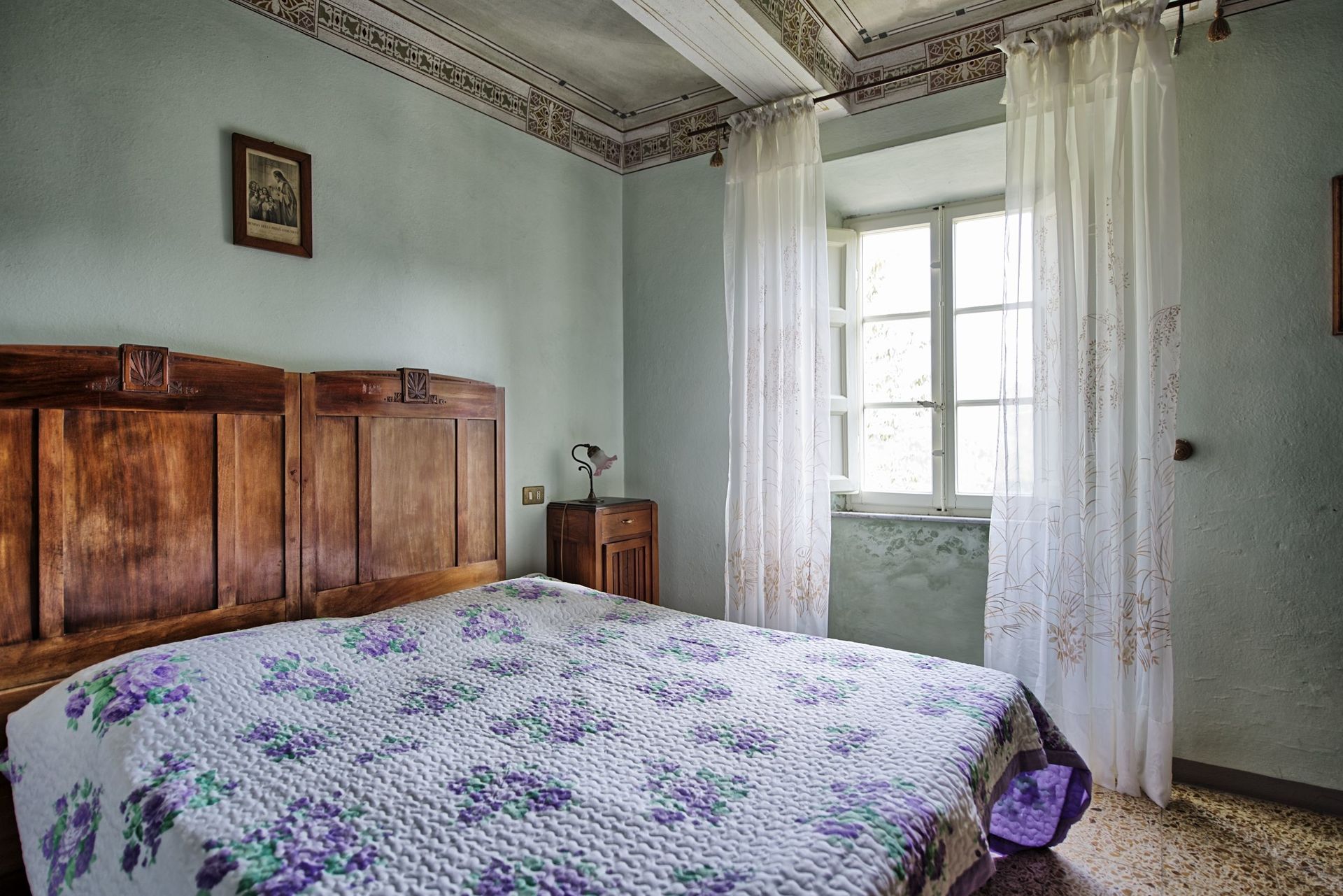 This is a lovely old building with high named ceilings. It was cool in the heat with great views. The pool was excellent and grounds around it were fantastic. The village setting is very nice with a great value and popular cafe and restaurant a stone throw away. The property was minimally furnished. Fridge etc was good, WIFI good, water good, but it lacked a bit of love and attention (broken slats under the sofa bed/ coffee maker not working etc ) Small things really, but I'm keeping the fifth star to reflect. Owner friendly and relaxed - nice atmosphere.