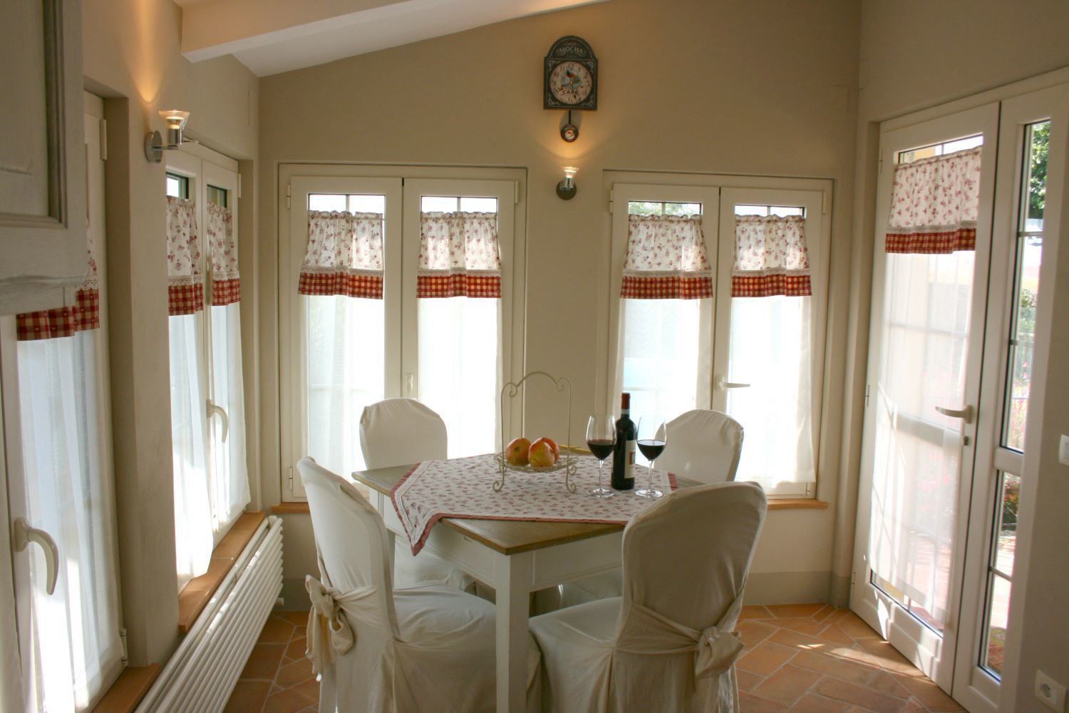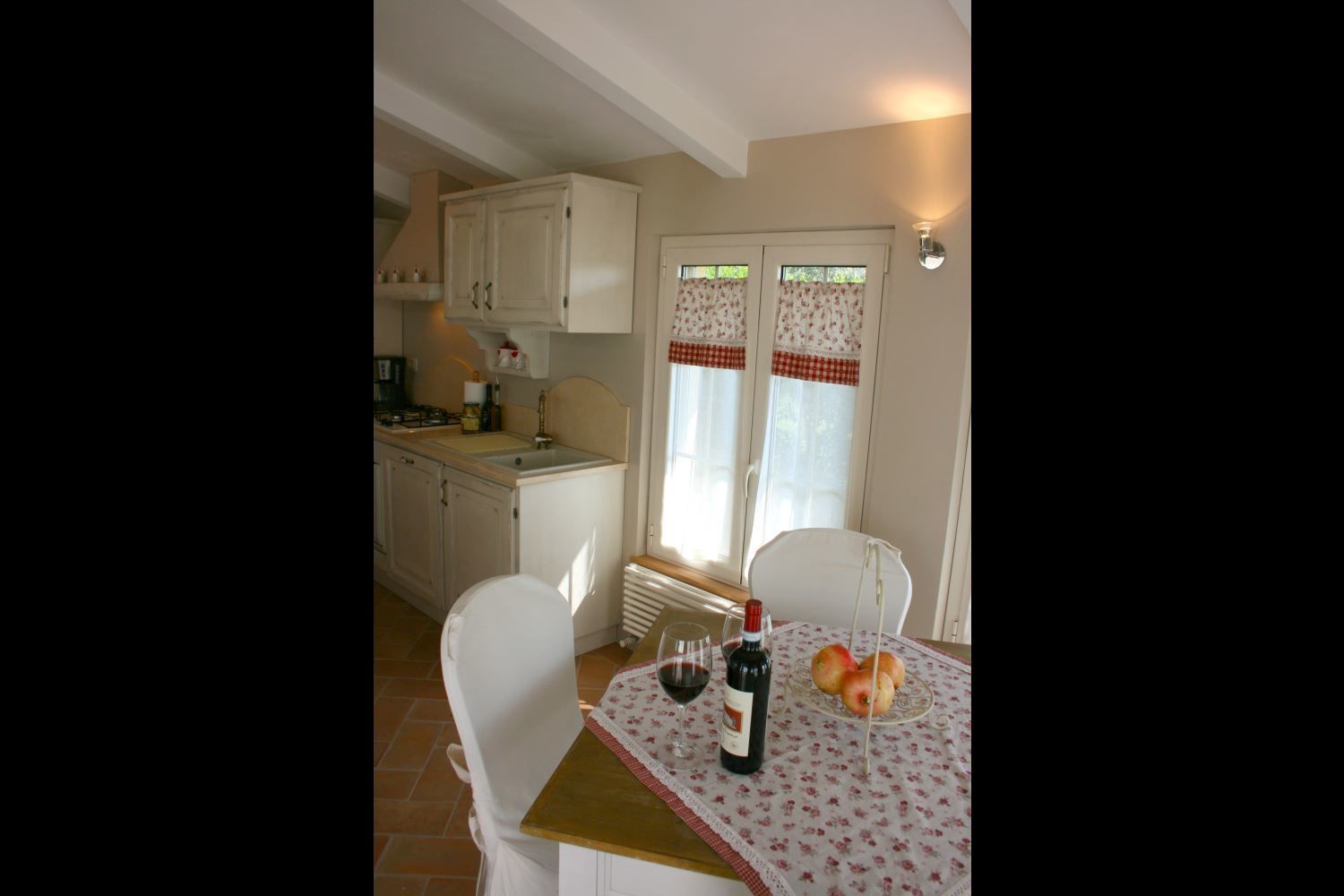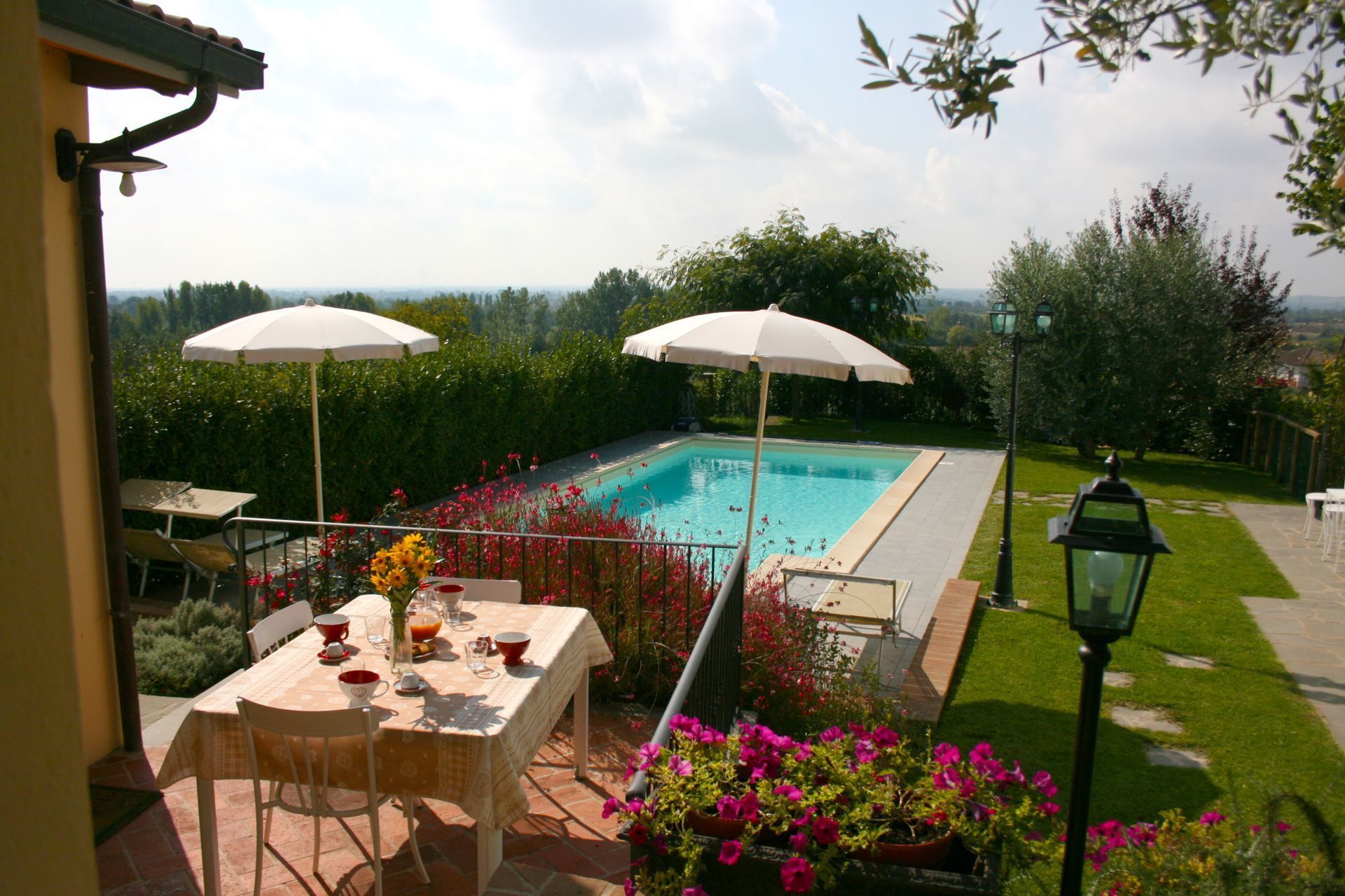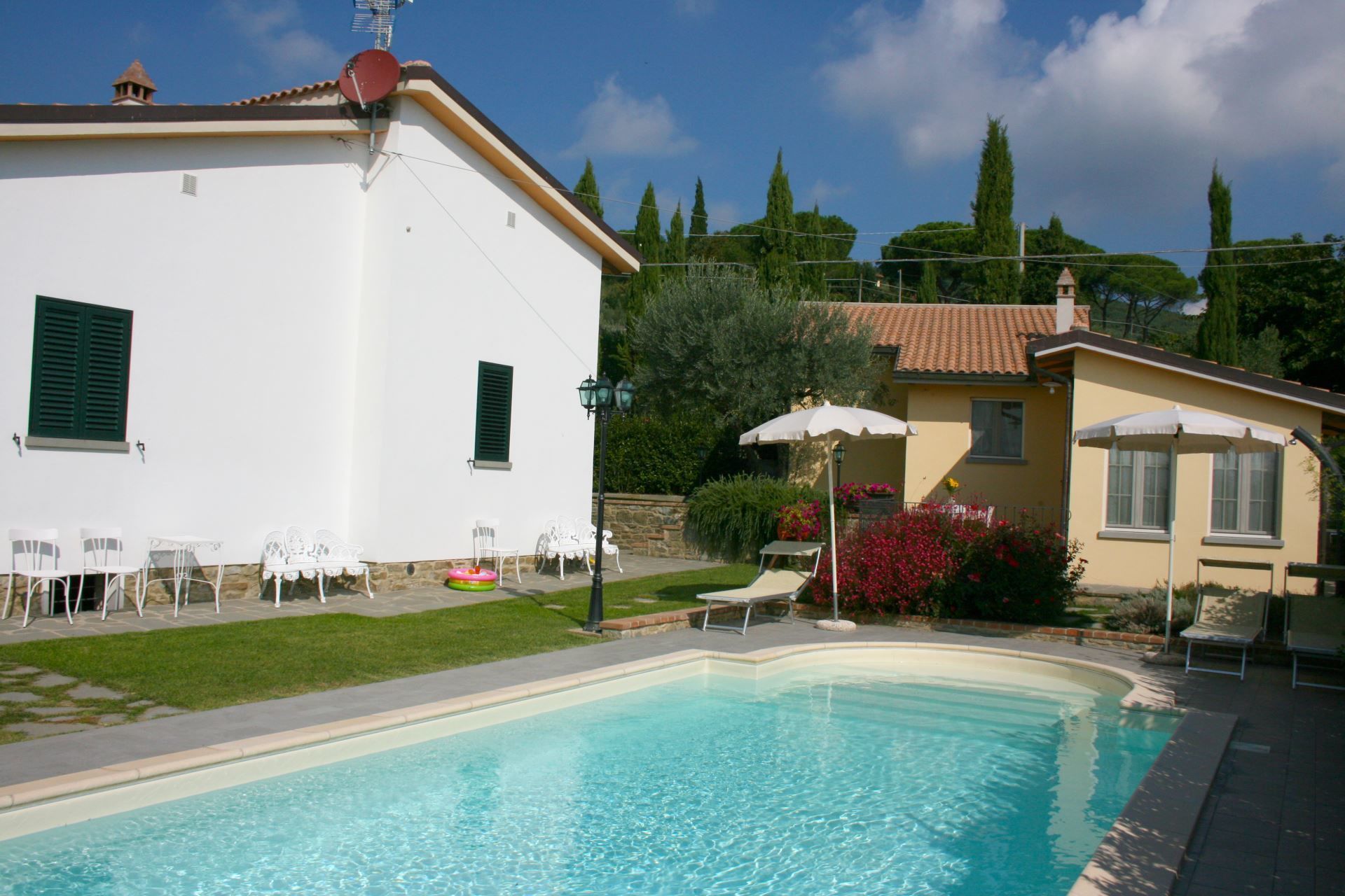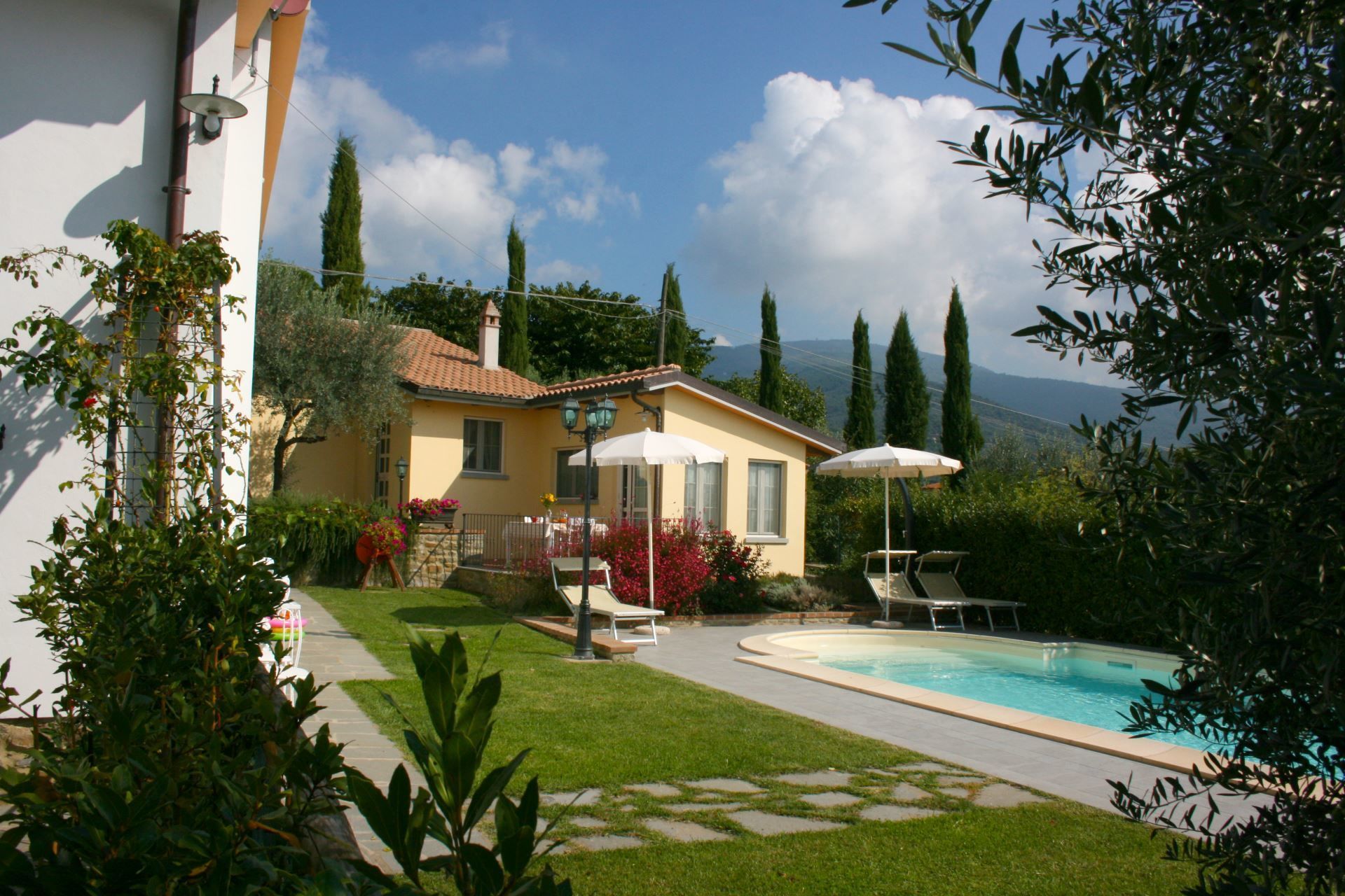 Picture this, if you will: a pretty villa in a small town with the lush greenery of trees and views over the vineyards and rolling hills of the Tuscan countryside all around, a front entrance opening into a little court with flowers and trees, climbing blooms and vines winding up the sunny yellow facade of the villa, green shuttered windows, a romantic balcony on the first floor above the entrance, and a terracotta roof to top it off. This is the dreamy first encounter that guests have when they reach Villa Toppani Del Sodo and this very much sets the appropriate tone for your vacation here.