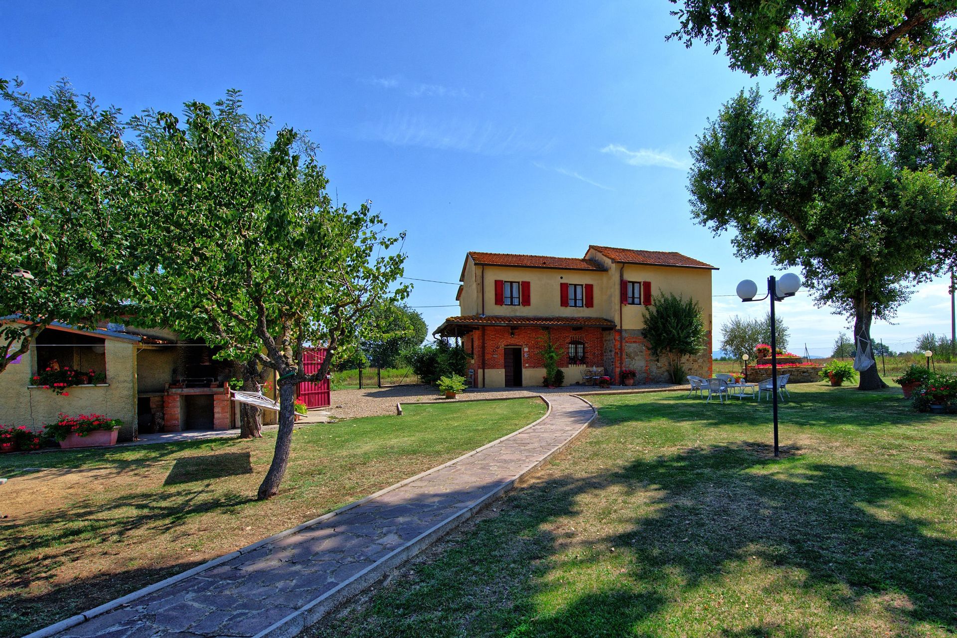 The villa is independent, furnished in a traditional rustic Tuscan style and is provided with a private garden and private swimming pool. Access to the property is via 300m of unpaved road in good conditions. Next to the villa, a landing path for ultralight aircrafts is available on request and at disposal of the guests in case they wish to live the unusual experience of a flight over the surrounding countryside.
