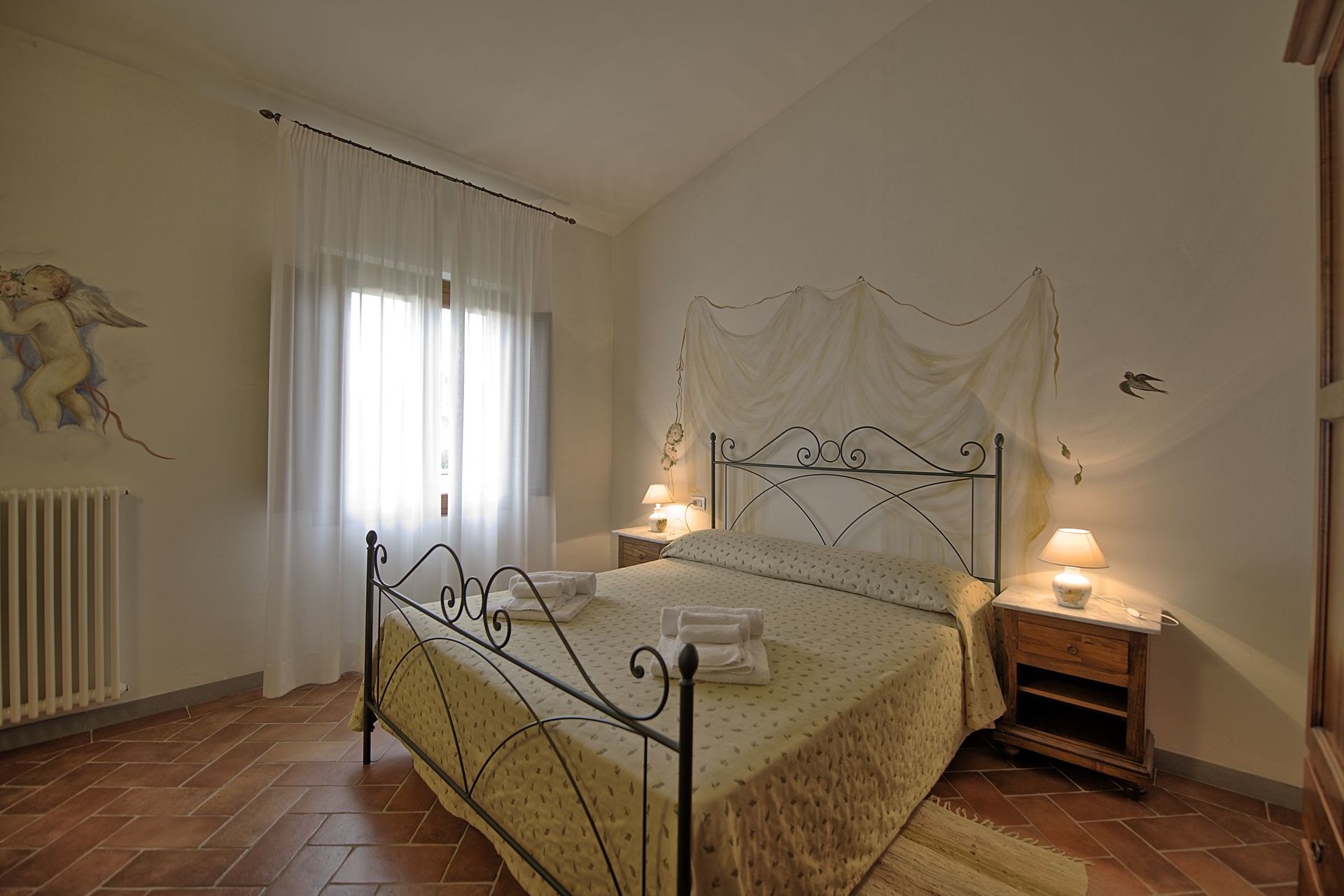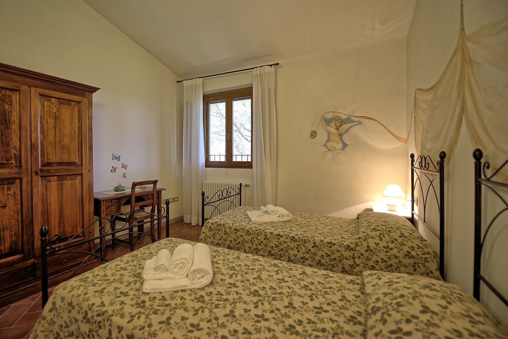 we stayed in the Corbozzolo unit. there were 4 separate air-conditioners (kitchen, living room and 2 bedrooms) and they worked fine. also dishwasher, large fridge, large freezer, stove, coffee maker, kettle and even a proper washing machine, ironing board and iron in the unit. Only a microwave is missing. pool area very nice, everything as in the photos. each cottage has a separate terrace. you can barbecue there, there are 2 communal barbecues with firelighters, charcoal, everything is provided. and every morning everything has been cleaned up by the owners. there is a small playground (new) with slide and swing, table football and table tennis. you can also get breakfast for 7 € per person. it is limited breakfast but you have everything, cheese, ham, scrambled eggs, cornflakes, fruit juice, coffee, tea, 1 homemade croissant and 2 self-baked roles. to find decent soft bread in tuscany as we know in belgium is enormously difficult, all bread is baked very hard. shops: coop in Montespertoli we found not so good, but in 10 minutes there is a very nice one in Montelupo, and a gigantic big Coop with shopping in Empoli at 20 minutes. wifi is everywhere, but at the back of the houses it is very difficult to get a connection. it is no problem in the living room and swimming pool area. not the fastest wifi, but it works.