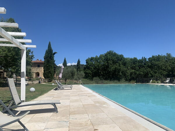 [English translation courtesy of Easy Reserve] Nice holiday home. We had a 3 person cottage. Rooms were spacious. Kitchen complete, only no oven. We had cottage no. 6. This had a lot of shade which was lovely with the hot weather. It is very quiet and you are not bothered by the other guests. Nice pool with plenty of sun loungers. There is a communal washing machine. Friendly owner. The road towards it is very bumpy, but doable. A beautiful piece of Tuscany.Would you recommend this property to a friend? Yes