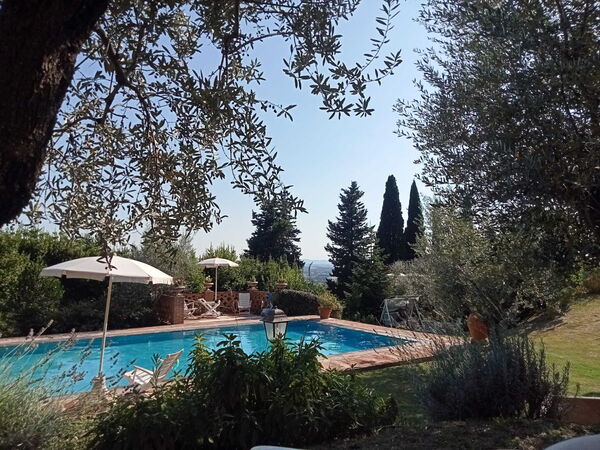 Excellent 5 /5This is a beautiful villa with a lovely garden and great swimming pool. All rooms hve air conditioning which was great because we were there during a heat wave. There are several places, in and out of the sun, for eating s well as barbecue and pizz oven. The rooms re spacious, nicely furnished and very clean. The villa is a2 minut drive from the village where you can find a good supermarket (Conad), a really good gelato shop (Mondo) and plenty of architecture in the old part of Castillion. Trains run from the Village to Arrezzo , and Corton is a 15 minute drive and well worth visiting. Carlotta, the owner, was brilliant and relly helpful. Her family make a relly good red wine plus olive oil both of which we bought to take home. I tried to upload more photos but it wouldn't let me even though they were of the right size. Pity, but the place was perfect for us