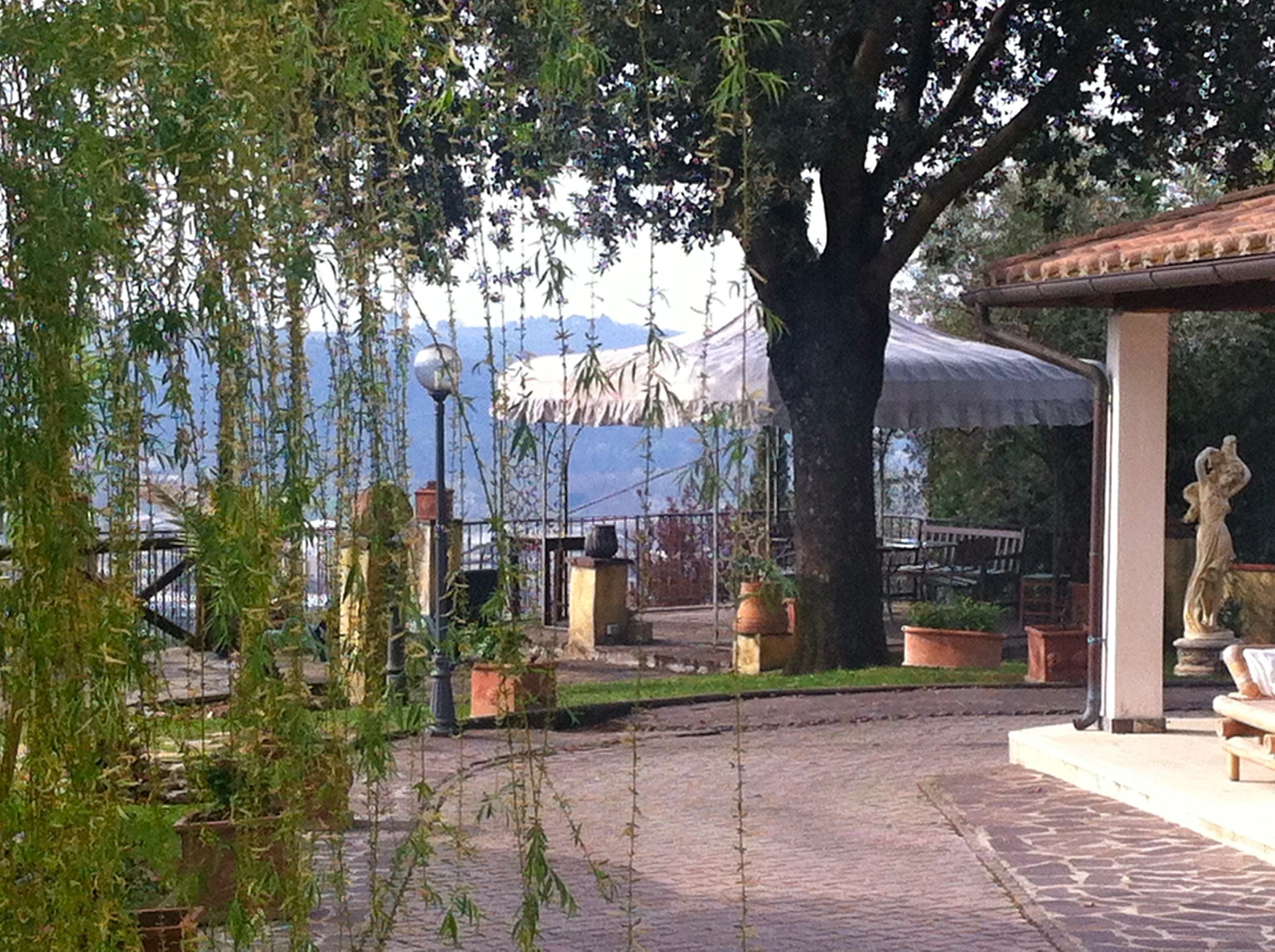 The grounds are gorgeous and include a lawn, infinity pool, hot tub, laundry room, BBQ, outdoor tables and chairs and a breathtaking view of the countryside. Willow trees grace the property, the infinity pool is trimmed with lovely statures, and the playful swing hanging from a tree is inviting, even to adults. The birds will sing you a chorus every morning and throughout the day. In the evenings, you can sip wine while looking at the twinkling lights in the valley below, listen to the splashing fountains, and imagine for a moment that you can stay there forever. You will feel like a local living on a hillside in Tuscany.
