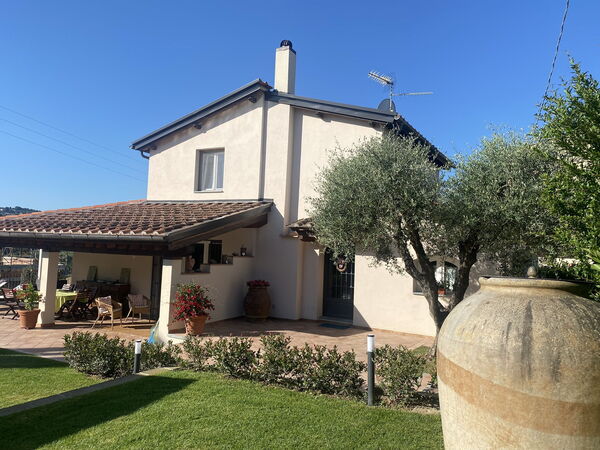 [counter comment from the owner] yes there is a one-storey house under construction, the works were suspended during the rental period and will start again from the end of September and will be completed by the end of this year 2023. The view will not be obscured, because it is only one floor and therefore the surrounding countryside will be clearly visible from the loggia of the villa.